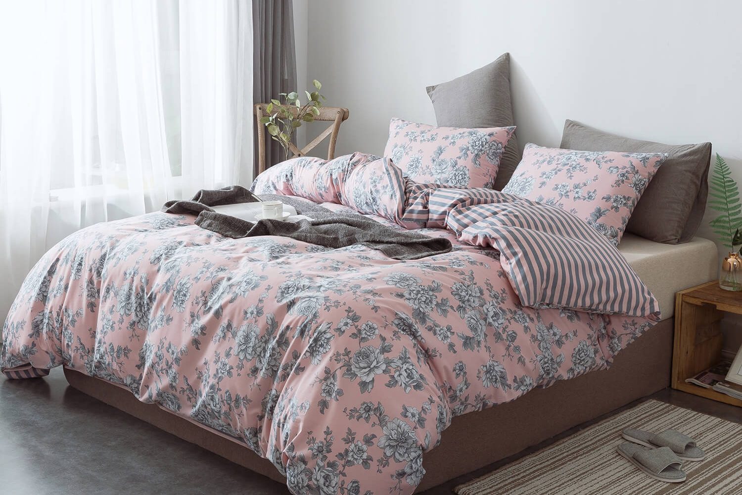 Cotton Reversible Duvet Pink Front And Back