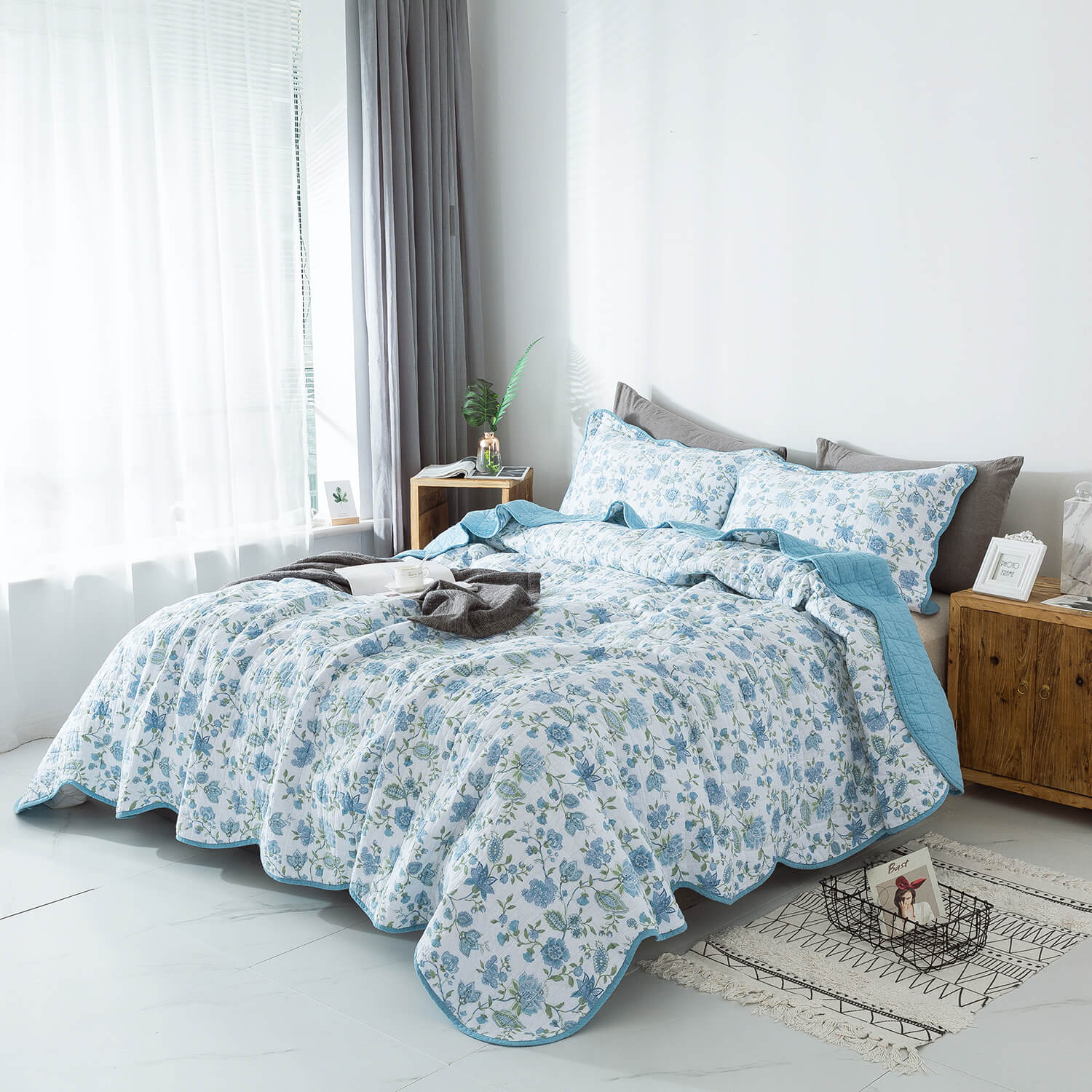 Print Jacobean Blue Quilt