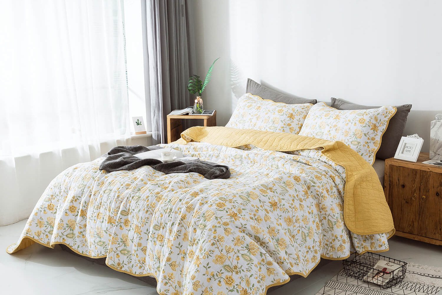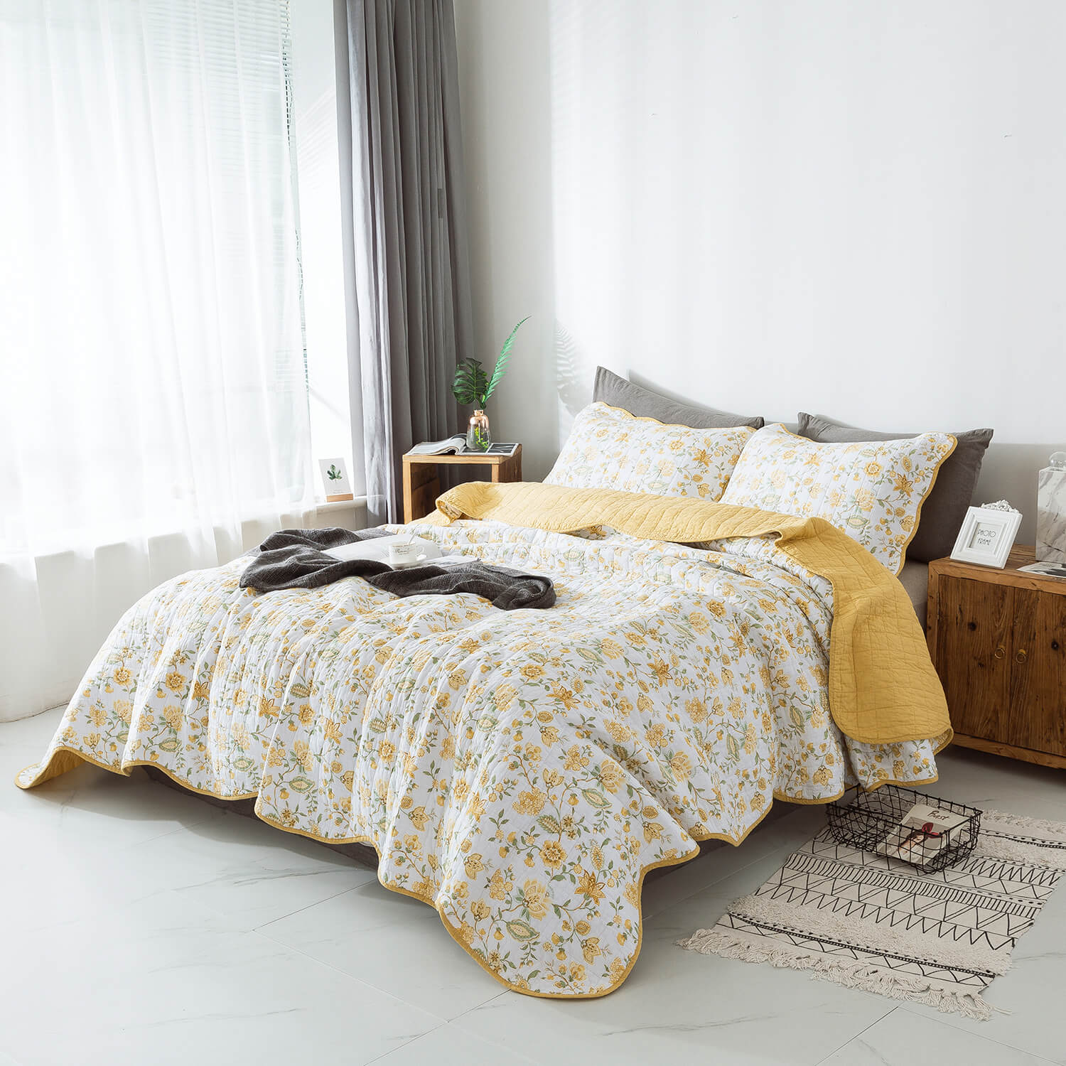 Print Jacobean Yellow Quilt